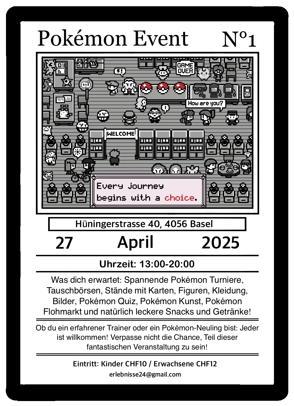 Für alle Pokemon- Fans! Egal, ob du ein erfahrener Trainer oder ein Neuling bist- jeder ist willkommen! Verpasse nicht die Chance, Teil dieser fantastischen Veranstaltung zu sein! Was dich erwartet: ...